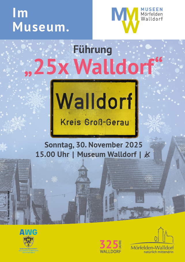 Seit dem 27. Februar 2025 können Besucher und Besucherinnen die Jahresausstellung „25x Walldorf“ im Museum Walldorf besichtigen: 25 Objekte aus dem Museumsdepot führen hier beispielhaft durch die 325-jährige Geschichte und das alltägliche Leben in Walldorf. Einige der Objekte werden erstmalig der Öffentlichkeit zur Schau gestellt.